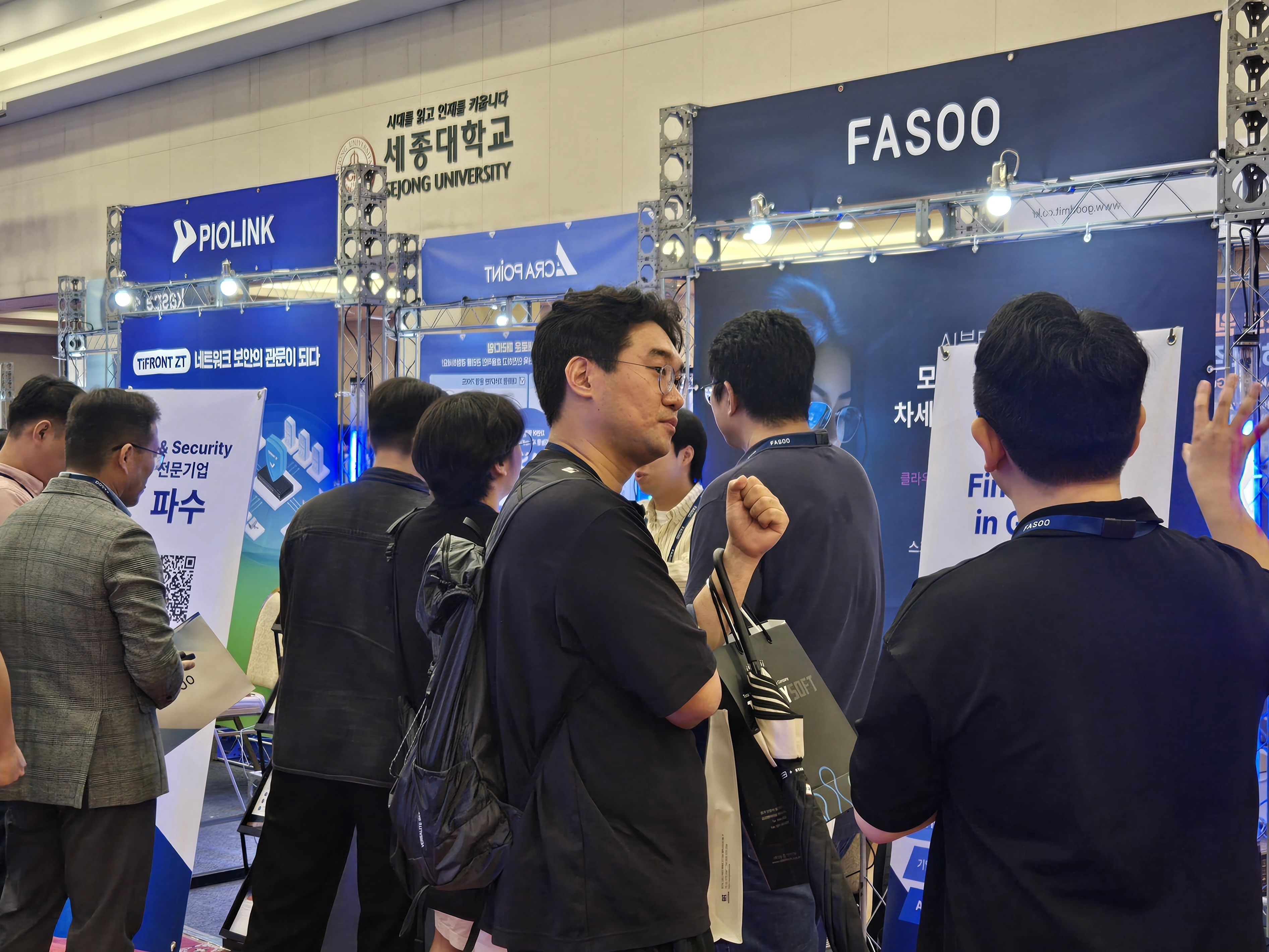 파수 부스에서는 AI 기반 솔루션을 향한 문의도 끊이지 않았습니다. 특히, 기업 내부에서 AI 도구 사용을 통제하거나 모니터링할 수 있는 솔루션에 대한 문의가 많았는데요. 많은 보안 담당자분들이 제대로 된 보안 체계가 없는 상태에서 임직원들이 생성형 AI를 활용하는 상황을 우려하고 계시다는 점을 실감할 수 있었습니다.
